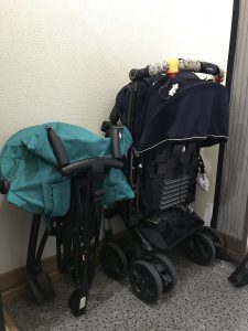 さらに、わが家の狭い玄関スペースにも、なんとベビーカー2台が並びました!