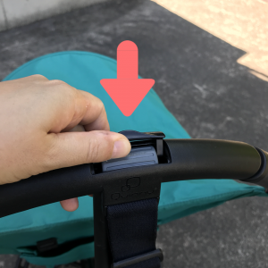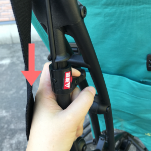 というのも、折りたたむ時に、持ち手の部分にある、こちらを開けて、ボタンを押しながら折りたたむのですが↓
