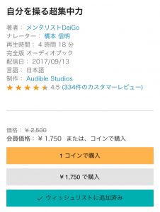 Audible(オーディブル)は2018年8月28日より「コイン制」に変更となっています。