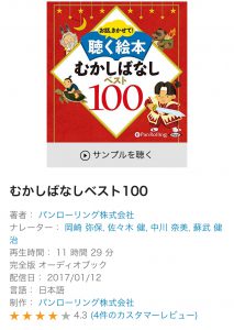 「ももたろう」や「大きなカブ」など、一度は聴いたことがある有名なお話ばかりが100タイトルも入っている!